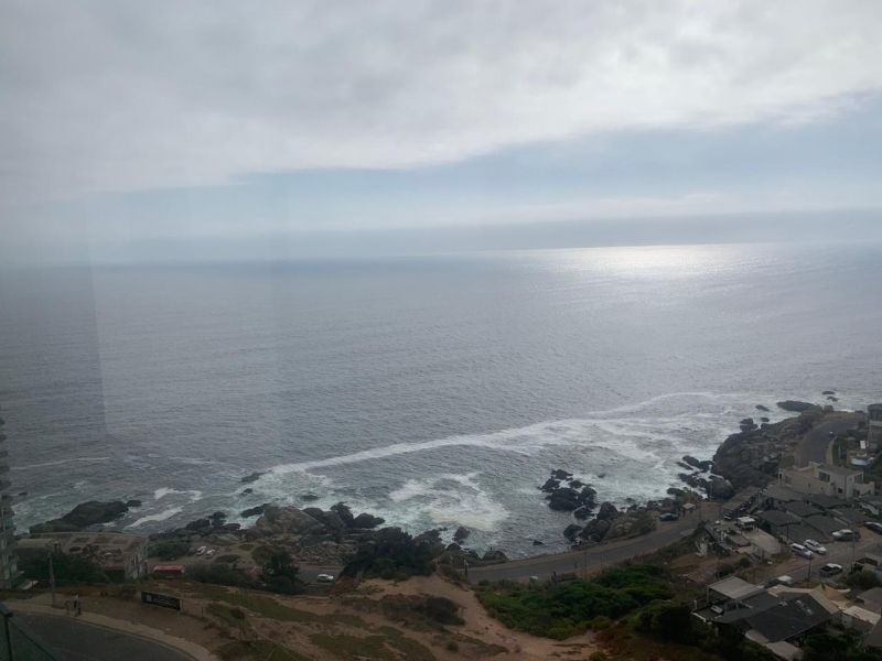 Departamento amplio con gran vista al mar, terraza grande, cerrada con ventanal plegable, tiene 4 dormitorios, dormitorio principal en suite con walk in closet, baño de visita, cocina con muebles de granito con logia incorporada, comedor de diario, tiene 3 estacionamientos, 1 bodega, calefacción por radiadores, edificio cuenta con sala multiuso, piscina temperada y piscina al aire libre