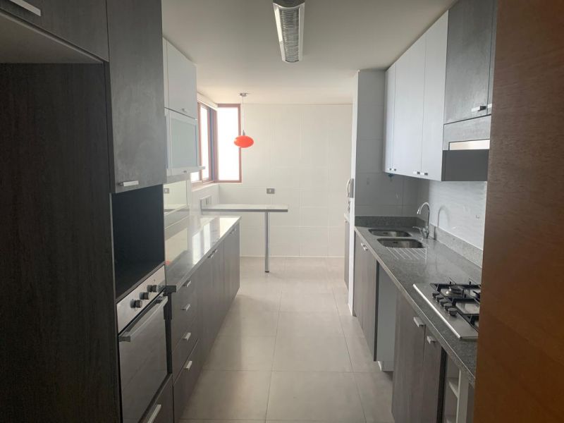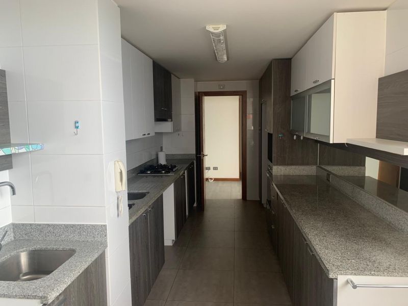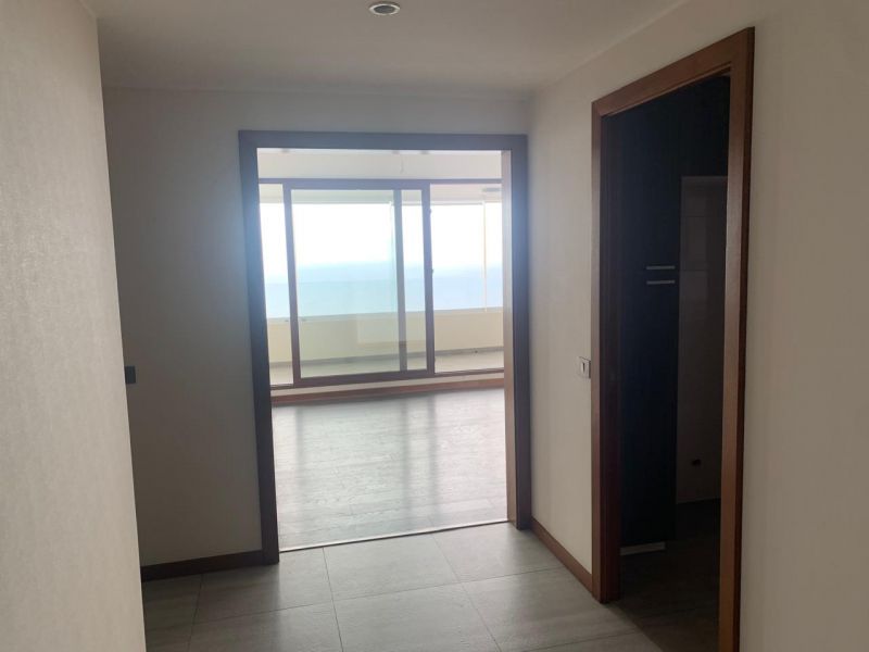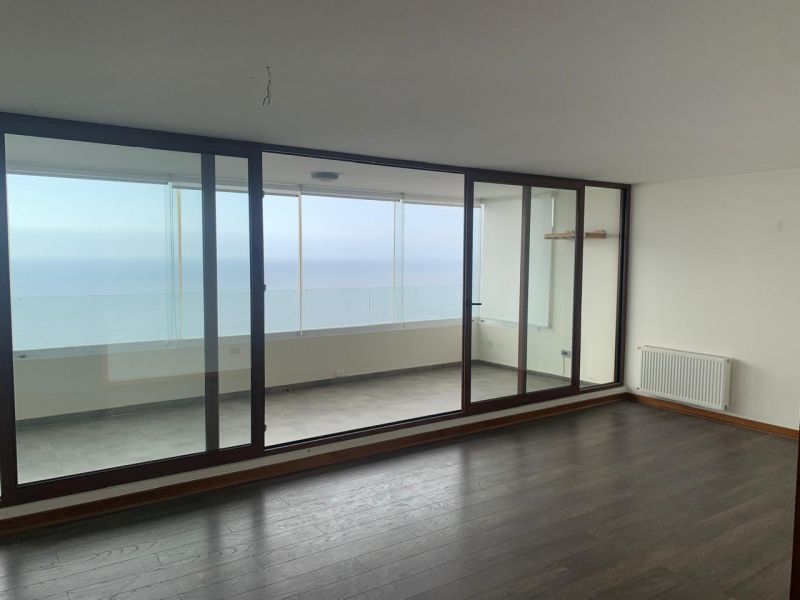 Departamento amplio con gran vista al mar, terraza grande, cerrada con ventanal plegable, tiene 4 dormitorios, dormitorio principal en suite con walk in closet, baño de visita, cocina con muebles de granito con logia incorporada, comedor de diario, tiene 3 estacionamientos, 1 bodega, calefacción por radiadores, edificio cuenta con sala multiuso, piscina temperada y piscina al aire libre